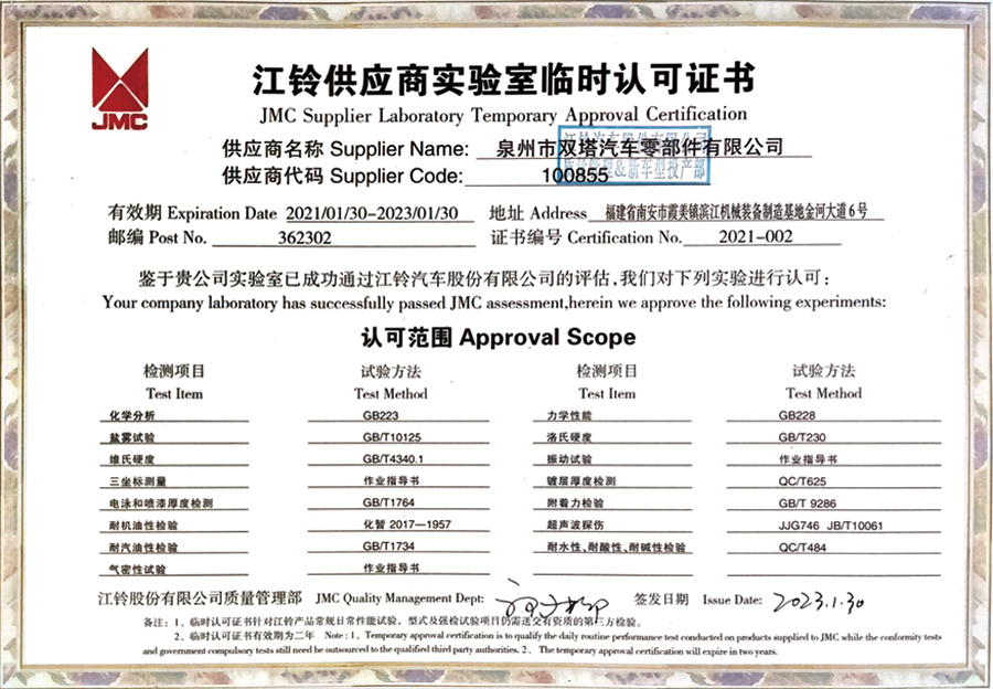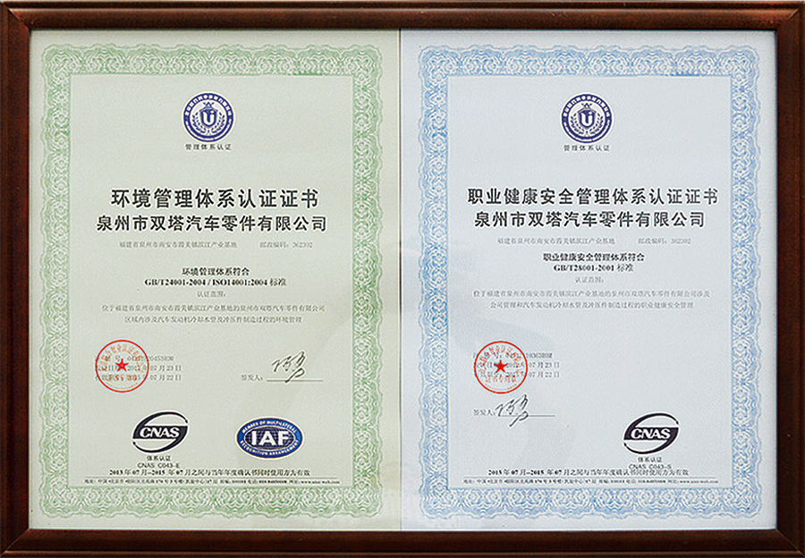 雙塔企業(yè)以汽車(chē)行業(yè)TS16949標(biāo)準(zhǔn)為基礎(chǔ)建立質(zhì)量管理體系,積極推進(jìn)ISO14001:2004環(huán)境管理標(biāo)準(zhǔn)和OHSAS 18001:2007職業(yè)健康安全體系的管理工作。通過(guò)體系延伸,汽車(chē)配件產(chǎn)品質(zhì)量控制由傳統(tǒng)的主機(jī)廠對(duì)供應(yīng)商生產(chǎn)質(zhì)量控制,延伸到原材料供應(yīng)商和輔配件供貨商,全面覆蓋從零配件供應(yīng)商、外協(xié)生產(chǎn)過(guò)程以及現(xiàn)場(chǎng)服務(wù)的質(zhì)量體系,確保全過(guò)程質(zhì)量控制。